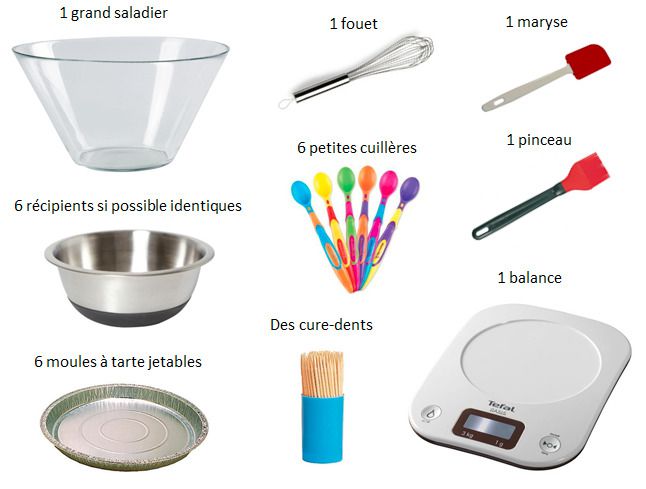 Soustraire le poids du saladier vide (ex : 1850 - 350= 1500) et diviser le poids obtenu par 6 soit le nombre de génoises voulues (ex : 1500/6 = 250).
