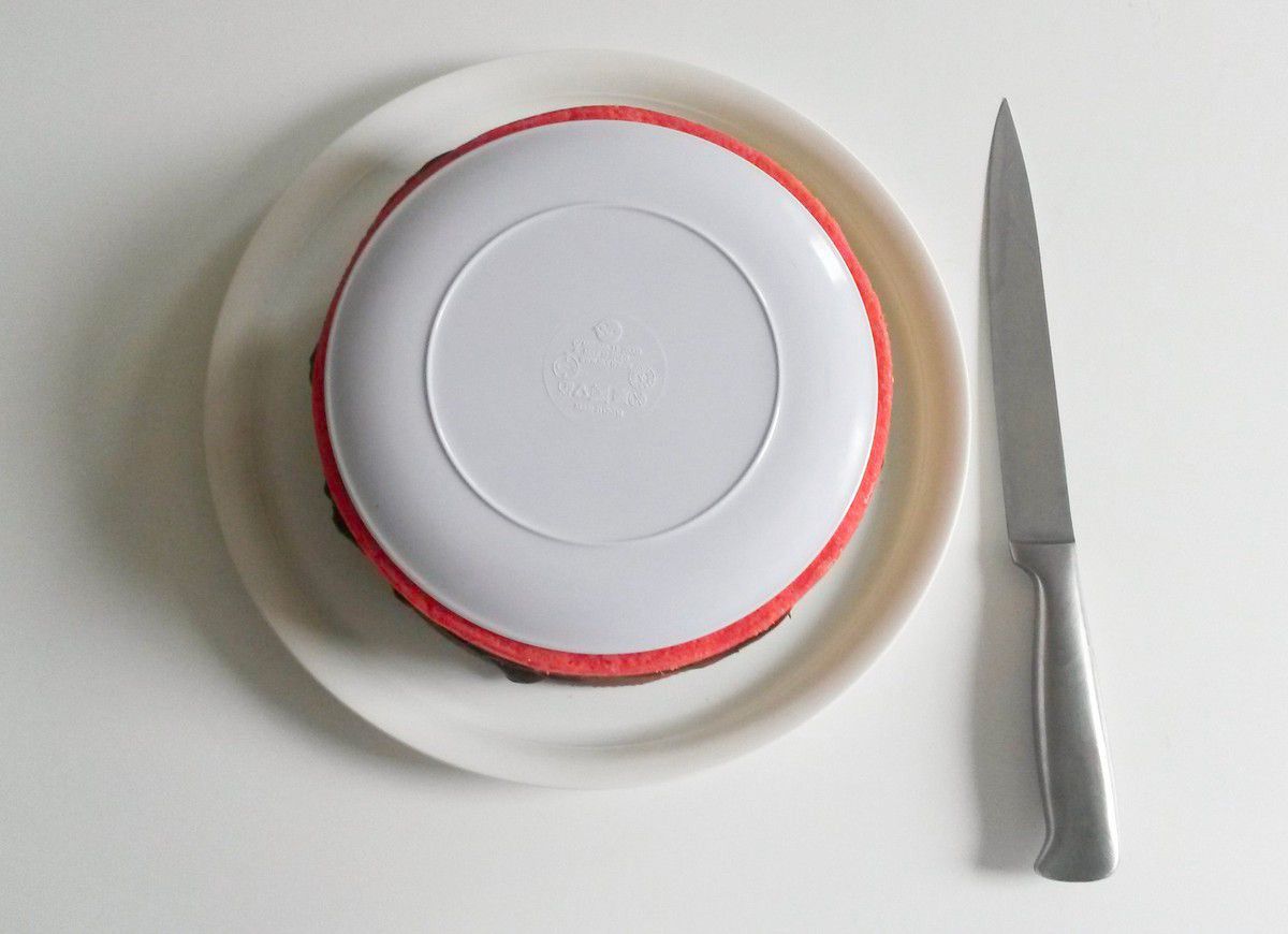 Si vous souhaitez recouvrir votre gâteau de pâte à sucre (ou de ganache) et que vous ne voulez pas que les différentes couches de génoises soient visibles (effet bibendum) : mettre le gâteau au frigo un quart d'heure environ. Puis prendre une assiette légèrement plus petite que le gâteau afin de l'utiliser comme "pochoir". Avec un grand couteau, couper le surplus en suivant les bords de l'assiette. Et voilà !