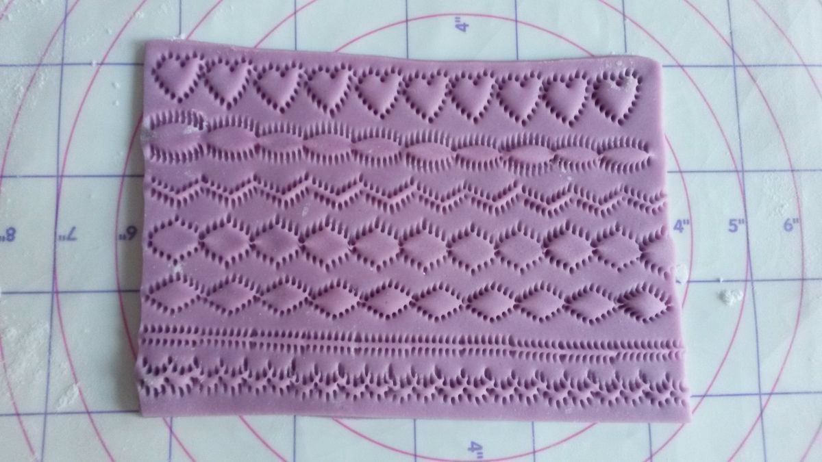 Je les utilise sur les bords des gâteaux. Il suffit juste de pincer légèrement la pâte à sucre et de longer le plus régulièrement possible le bord ou l'arrête du gâteau.