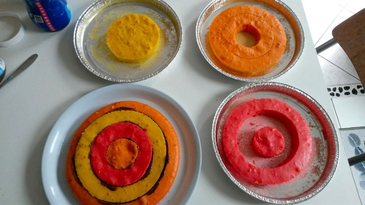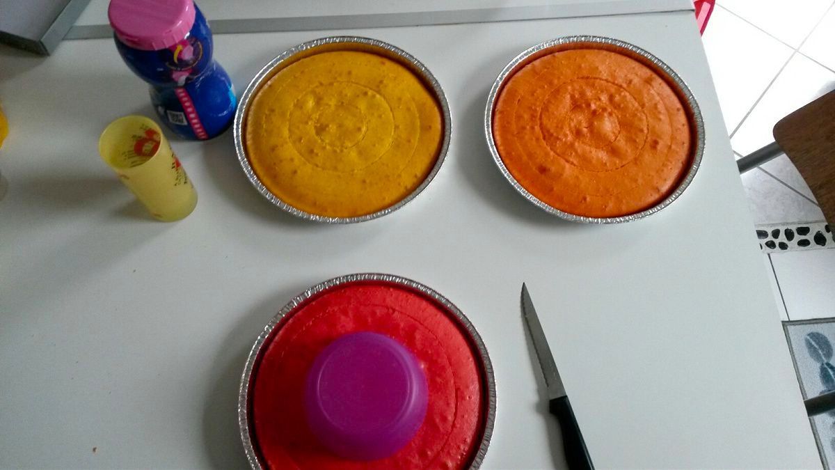 Tout d'abord, vous devez préparer vos trois génoises colorées.