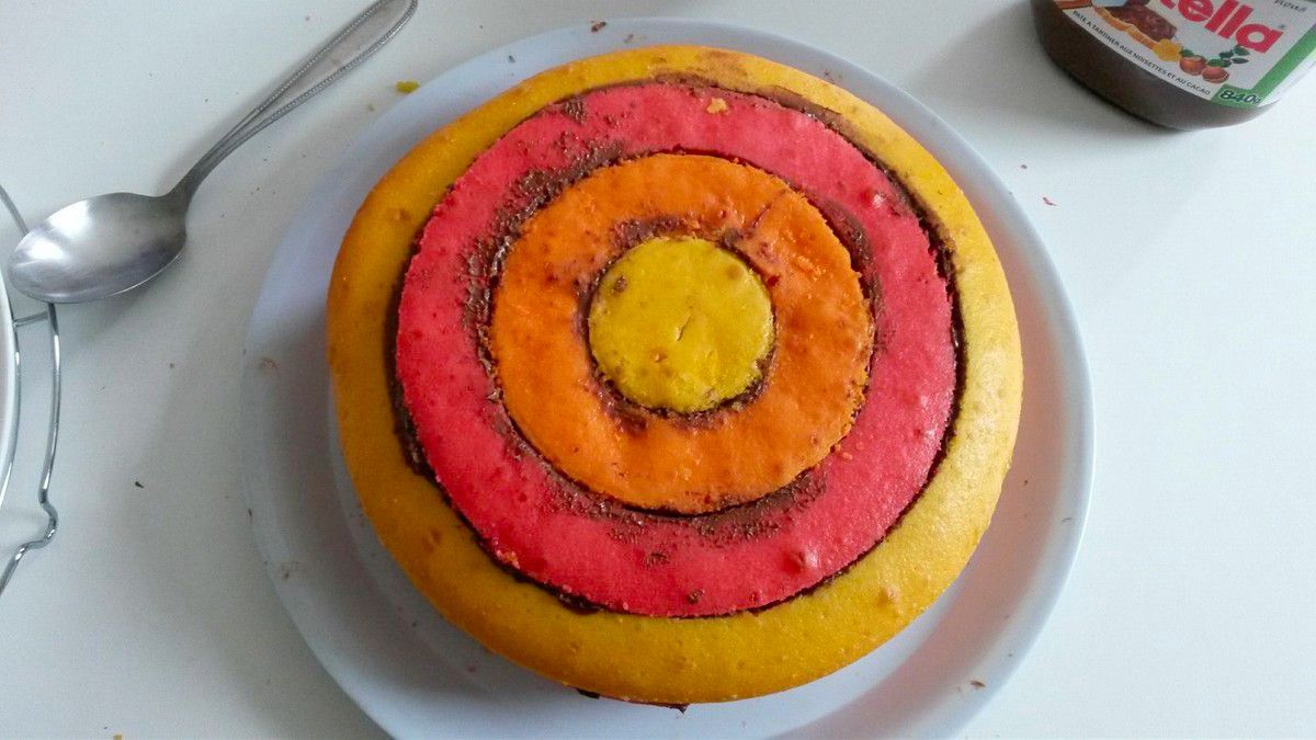 A SAVOIR : vous pouvez également réaliser un damier pour un gâteau de forme carrée ou rectangulaire. Faites cuire vos génoises dans des plats ou moules rectangulaires. Puis lorsqu'elles ont refroidi, découpez les en bandes de tailles équivalentes. Vous n'aurez plus qu'à faire le montage en alternant les couleurs et en n'oubliant pas de mettre suffisamment de nutella entre chaque face de génoises pour assurer la tenue à la découpe.