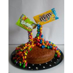 Certains fixent les bonbons entre eux avec du chocolat, pour ma part, j'utilise du caramel. Je trouve que le résultat est plus "propre" dans le sens où s'il y a des coulures, le caramel est plus discret que le chocolat. Trois difficultés à cette étape :