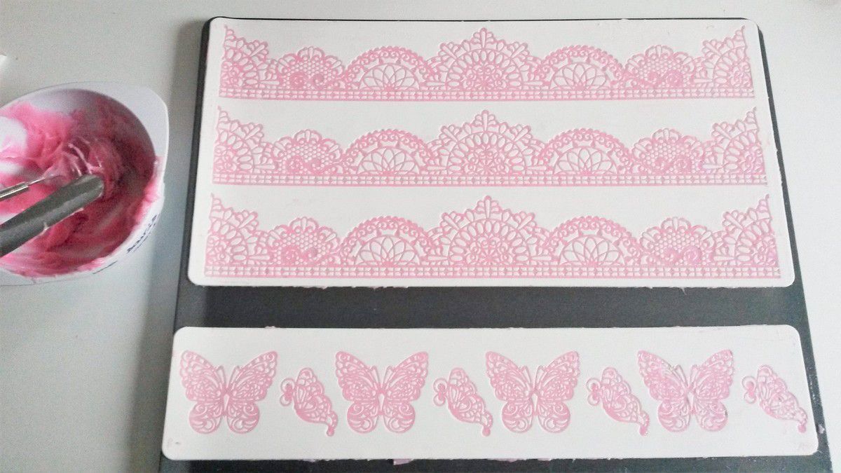 En quelques mots, une brève description du sucre dentelle : il s'agit d'une dentelle comestible souple qui permet de réaliser une décoration toute en finesse. Il en existe sous forme de pâtes prêtes à l'emploi ou bien sous forme de poudre à diluer. Certains sucres dentelle sont colorés et/ou aromatisés. La plupart du temps, cet élément de décoration est collé sur de la pâte à sucre soit avec de la colle alimentaire soit, tout simplement, avec un peu d'eau.