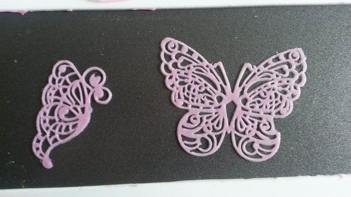 Une fois le sucre dentelle sec (ou cuit), il faut le retirer du tapis en silicone. Pour les petis motifs comme les papillons ci dessous procéder délicatement avec les doigts cela suffira.