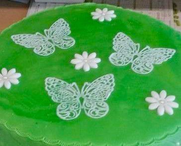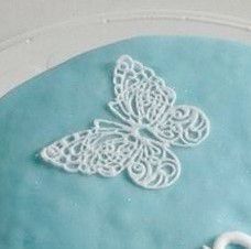 Ensuite, disposer les motifs sur une feuille de cuisson (surtout pas de l'essuie-tout qui assèchera le sucre dentelle et le rendra cassant). Il ne restera plus qu'à coller à l'eau ou la colle alimentaire, la dentelle sur votre gâteau.