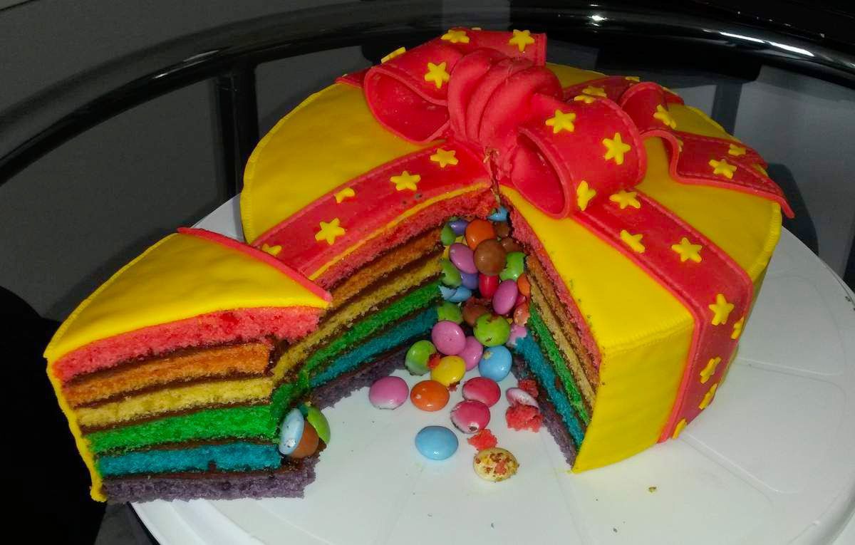 Un maximum d'effet au moment de le découper car une cascade de bonbons doit s'en échapper.