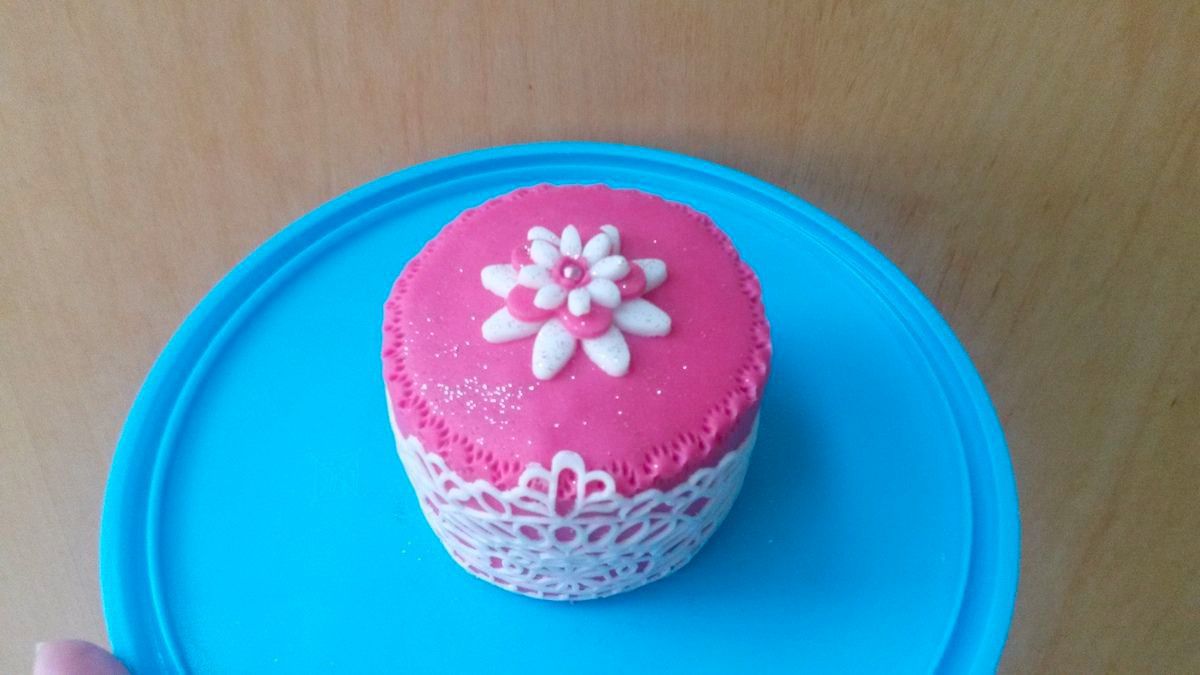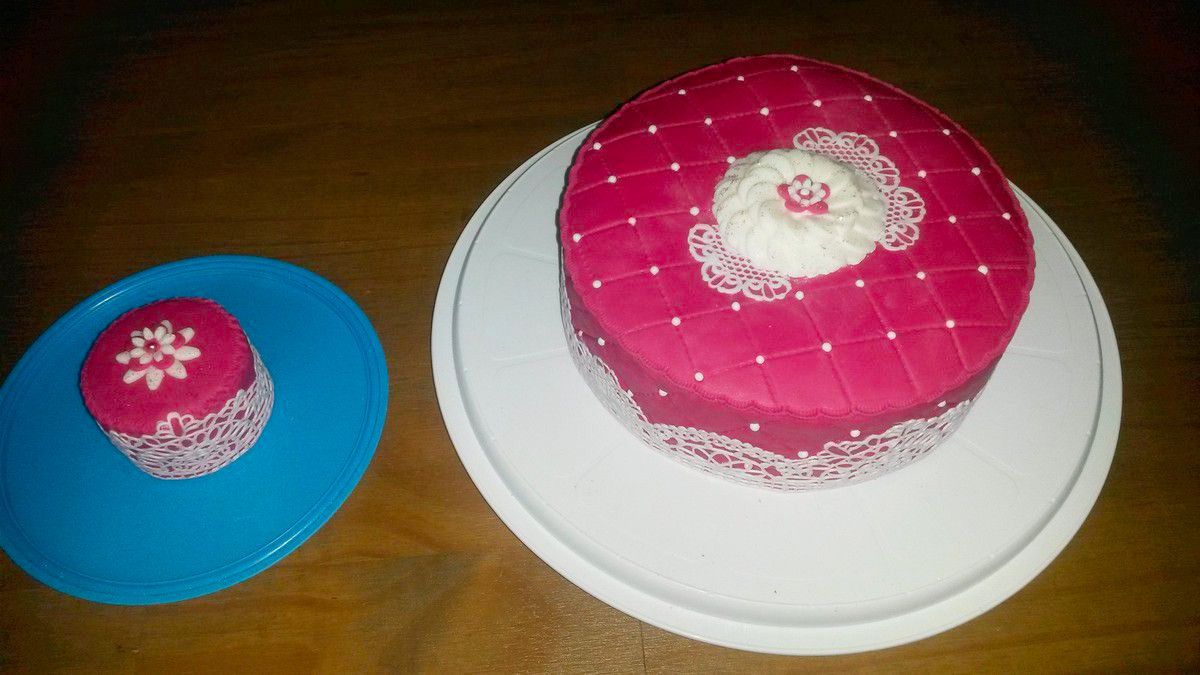 Astuce : ne jetez pas le milieu du gâteau que vous avez découpé pour placer les bonbons. Utilisez-le pour réaliser un mini gâteau supplémentaire comme j'ai fait pour le Gâteau Girly ci-dessous :